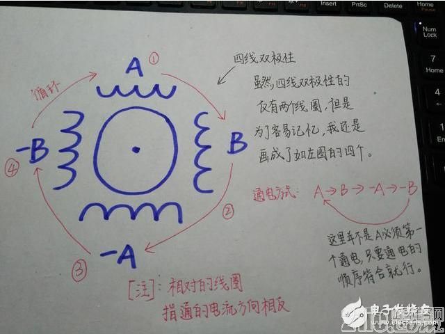 ![]() 下面是四線雙極性步進電機: